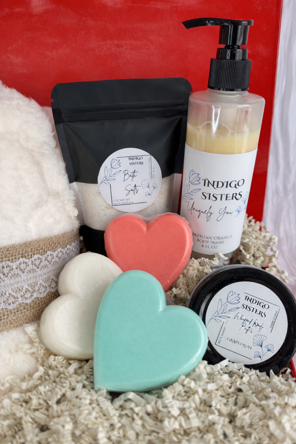 Soaps: 3 × 3 oz heart-shaped bars