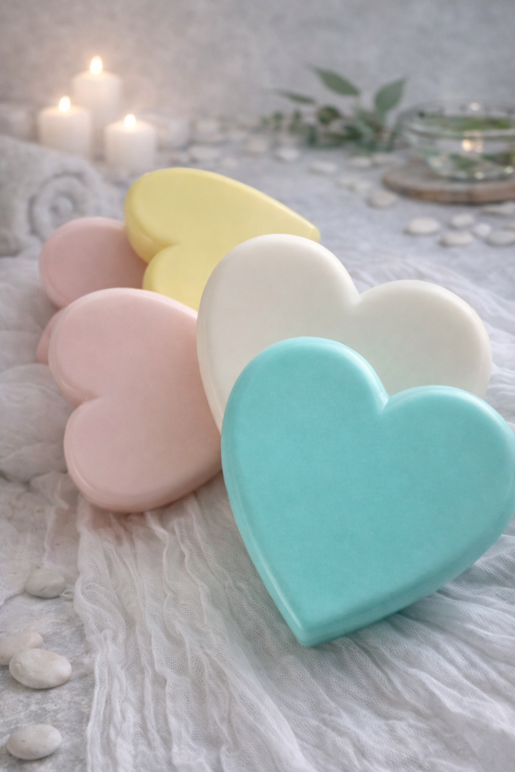 Use heart soaps to cleanse gently; follow with body wash for a creamy lather.
